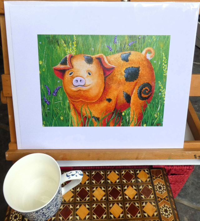 "Rootle and Wallow" is from my "Compassionate World" collection. Celebrating British ethical farming and compassion for farm animals. I have used stars and spirals to capture the spirituality of the British Oxford Sandy and Black Pig.