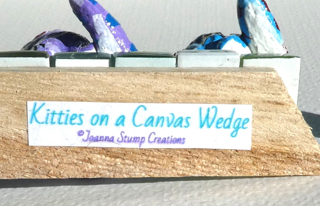 Wonderful Gifts. "Kitties on a Canvas Wedge" are fun handmade gifts. Purple and blue